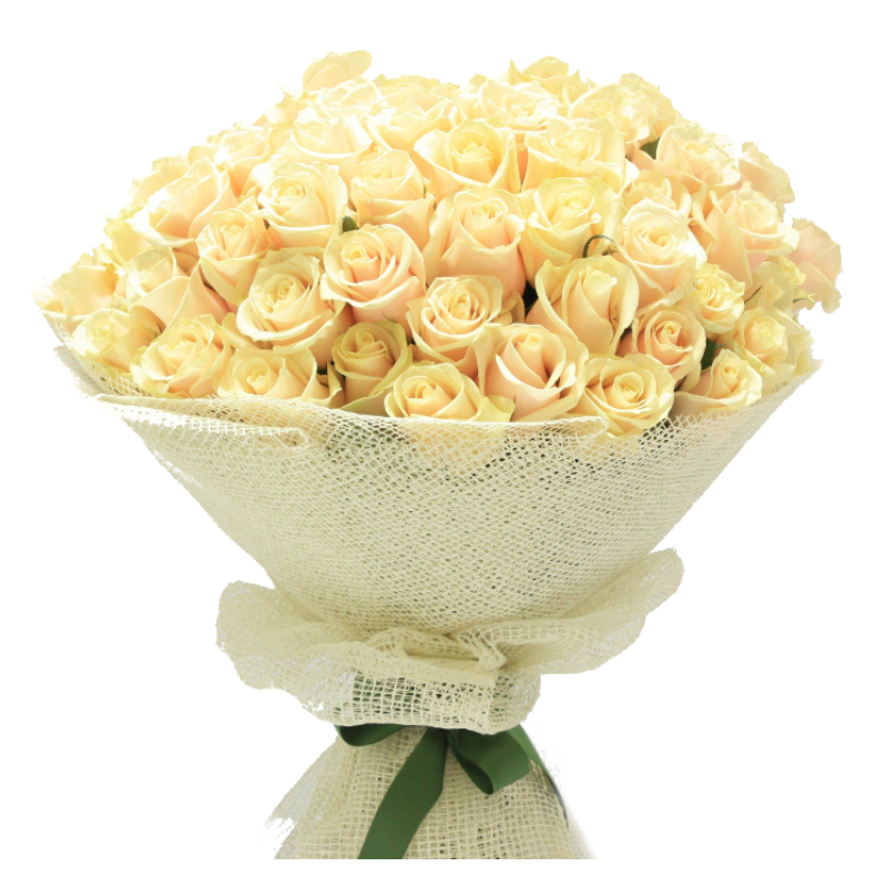 Букет состоит из 51 кремовая роза, крафт, атласная лента.